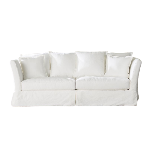 To bring the comfort of the inside to the beachfront, guests enjoy lounges blending with the sand and the sky. Our white Lally Couch and wood Colby Chairs provide the base for green, white and gold pillows. To add to the natural elements were stone vases and our side tables. Inside, linen couches and gold coffee tables welcome guests after dinner.